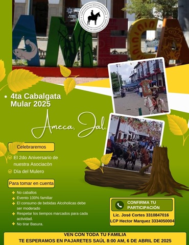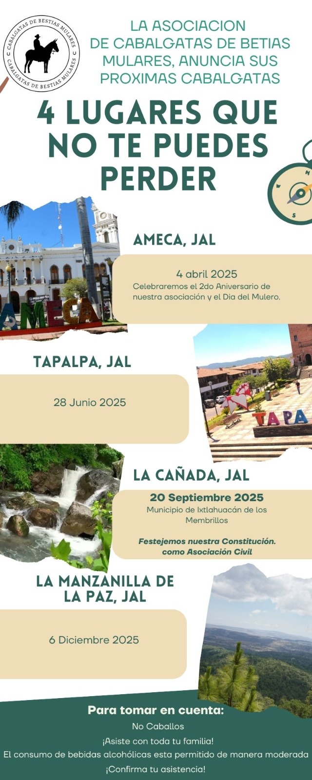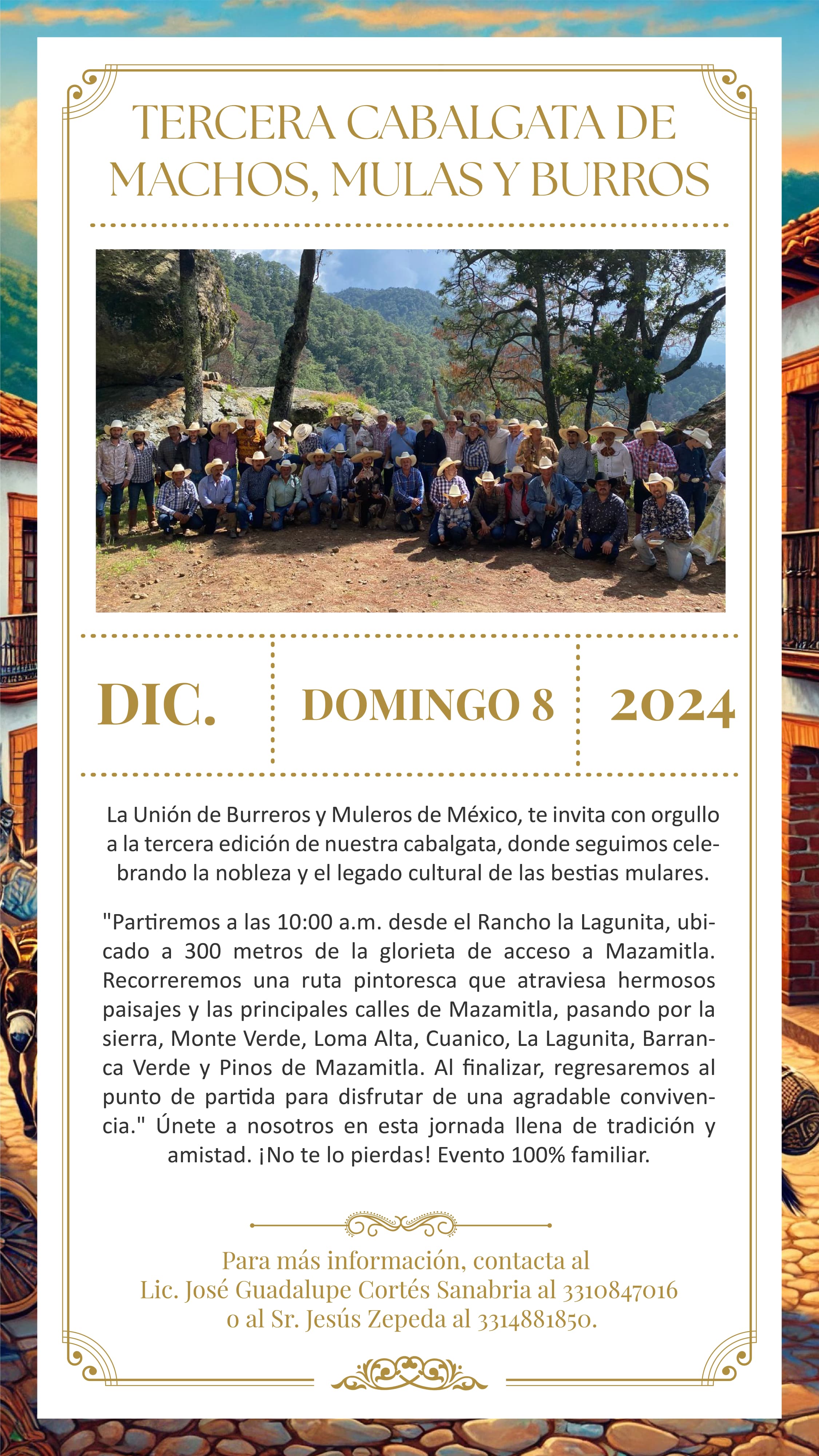 SOMOS UNA UNIÓN DE CABALGANTES MULEROS AC CONSTITUIDOS EL 9 DE SEPTIEMBRE DE 2025 NUESTRO PRINCIPAL OBJETIVO ES ORGANIZAR DE MANERA PROFESIONAL CABALGATAS MULARES DEJANDO HUELLA EN CADA LUGAR AL QUE LLEGUEMOS, INTEGRANDO GENTE BUENA Y HONESTA, AFICIONADA A ESTA ACTIVIDAD